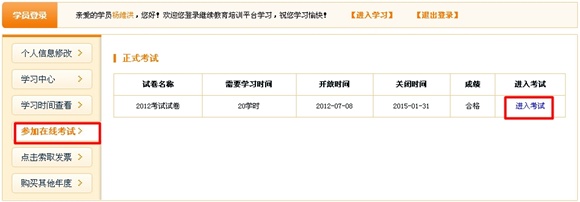 学满课时后,点击“参加在线考试”进入考试系统,60分及以上者,视为合格; 6、确认完成: